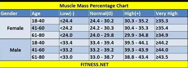 واليكم في الجدول الاتي القراءة المثالية لمكونات الجسم للشخص البالغ ذكرا او انثى وتختلف حسب نمط الحياة للشخص ونوع الرياضة التي يمارسها وشدتها ومدتها وطول وعمر وجنس الشخص اضافة لاعتبارات أخرى