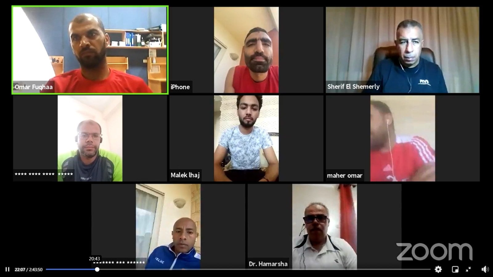 ويشارك في الدورة التي تقام عبر تقنية "الزووم" وعلى مدار عشرة أيام، 21 مدرباً من ثلاث دول هي: مصر، الأردن، وفلسطين، وتستخدم فيها الكاميرا الحيّة لأول مرة، لتقديم اختبارات عملية من مكان المشاركين.