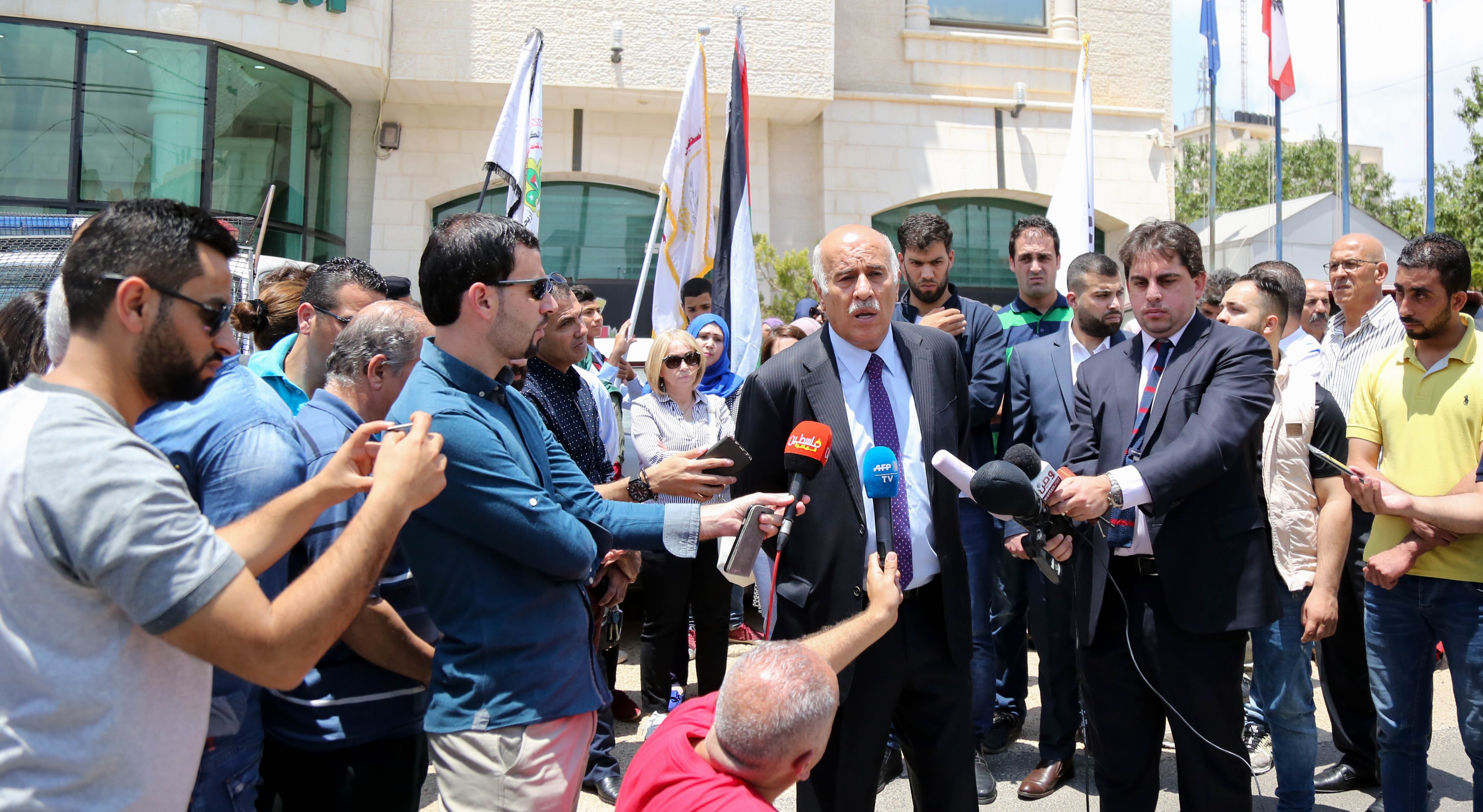 جاء ذلك خلال وقفة احتجاجية نظمها الاتحاد الفلسطيني لكرة القدم أمام الممثلية الأرجنتينية في مدينة رام الله اليوم الأحد، التقى خلالها الرجوب سفير دولة الأرجنتين لدى فلسطين إيدواردو ليونيل.