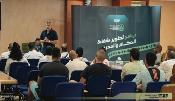 القدس – إعلام اللجنة الأولمبية: يحاضر د. نزار طالب، نائب اتحاد الكيك بوكسينغ الفلسطيني، في الدورة التأسيسية للمدربين، الذي ينظمها الاتحاد السعودي للملاكمة والركل في المنطقة الشرقية.