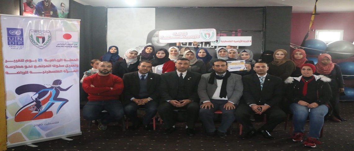 غزة-إعلام اللجنة الأولمبية: تتواصل فعاليات حملة "21 يوما" الخاصة بتعديل سلوك المجتمع تجاه ممارسة المرأة للرياضة والتي تنفذها اللجنة الأولمبية الفلسطينية بدعم وتمويل من برنامج الأمم المتحدة الإنمائي وبالتعاون مع المركز الفلسطيني للأبحاث والدراسات الرياضية، وأقيمت ورشة العمل الثانية بمقر نادي النجوم بمحافظة وسط غزة، واستهدفت عشرات النسوة من مختلف مناطقها السكنية .