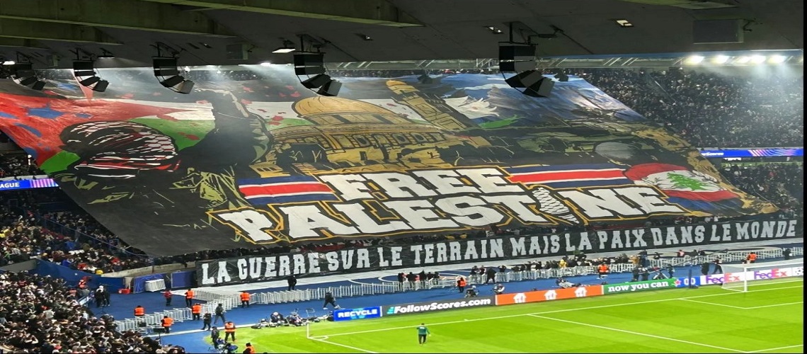 القدس – إعلام اللجنة الأولمبية: تضامنت جماهير نادي باريس سان جيرمان الفرنسي مع الشعب الفلسطيني على طريقتها الخاصة، مساء اليوم الأربعاء، في ملعب "حديقة الأمراء"، قبيّل انطلاقة مباراة فريقها أمام مضيفه أتلتيكو مدريد، ضمن منافسات بطولة دوري أبطال أوروبا.