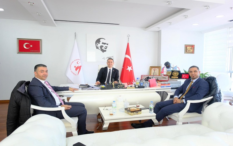 وضم وفد اتحاد التايكواندو، د. بشار عبد الجواد، رئيس الاتحاد، ونائبه فادي جاسر، اللذيّن اجتمعا مع السيد بحري تانريكولو، رئيس الاتحاد التركي.
