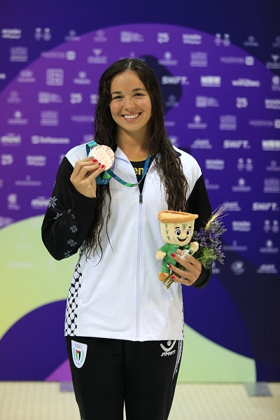 الرياض – إعلام اللجنة الأولمبية: أحرزت فاليري ترزي، لاعبة منتخبنا الوطني للسباحة، اليوم الأحد، أول ميدالية لفلسطين، في النسخة السادسة من دورة ألعاب التضامن الإسلامي، التي تحتضنها الرياض عاصمة المملكة العربية السعودية، حتى 21 من شهر تشرين الثاني الجاري.