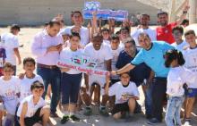 توج د. أسعد المجدلاوي نائب رئيس اللجنة الأولمبية الفلسطينية ظهر الاحد أبطال سباق الرمال للأطفال ضمن فعاليات الأسبوع الأولمبي الرياضي يوم الأحد على شاطئ بحر غزة بإشراف اتحاد ألعاب القوي.وأطلق د.المجدلاوي صافرة الانطلاق التي بدأت من صالة المعمورة وانتهت في النادي البحري بمشاركة 200 طفلا بحضور د. رمزي القرم نائب رئيس اتحاد ألعاب القوي، محمد العمصي الأمين العام المساعد للجنة الأولمبية وعدد من رؤساء الاتحادات الرياضية المختلفة وأهالي المشاركين.