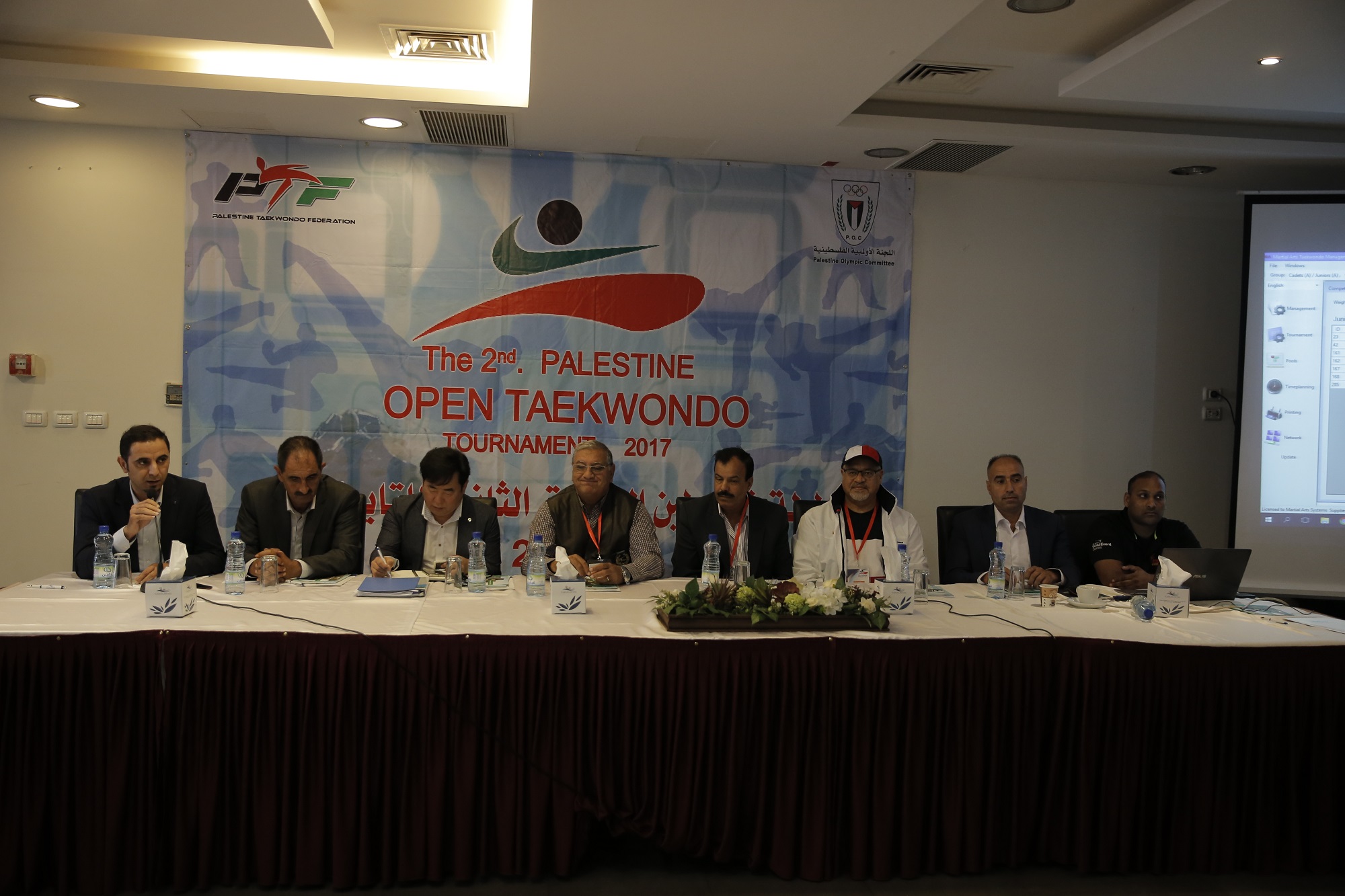 عُقد الاجتماع الفني لبطولة فلسطين الدولية للتايكواندو، اليوم الأربعاء، في فندق "السيزر" بمدينة رام الله، بمشاركة الوفود المشاركة والشخصيات الرياضية والاعتبارية، وذلك لمناقشة الحيثيات التنظيمية والفنية للحدث الدولي الذي يقام في فلسطين للمرة الثانية توالياً، بعد النجاح الذي لاقته البطولة العام المنصرم.