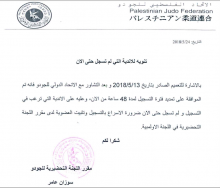 بالإشارة للتعميم الصادر بتاريخ 13 / 5 / 2018، وبعد التشاور مع الاتحاد الدولي للجودو، فقد تمّت الموافقة على تمديد فترة التسجيل باتحاد الجودو لمدة 48 ساعة من تاريخ اليوم 24 / 5 / 2018، وعليه فإنّ الأندية التي لم تسجل حتى الآن ولديها الرغبة، الإسراع بالتسجيل وتثبيت العضوية لدى مقرر اللجنة التحضيرية سوزان عامر في مقر اللجنة الأولمبية بالبيرة.