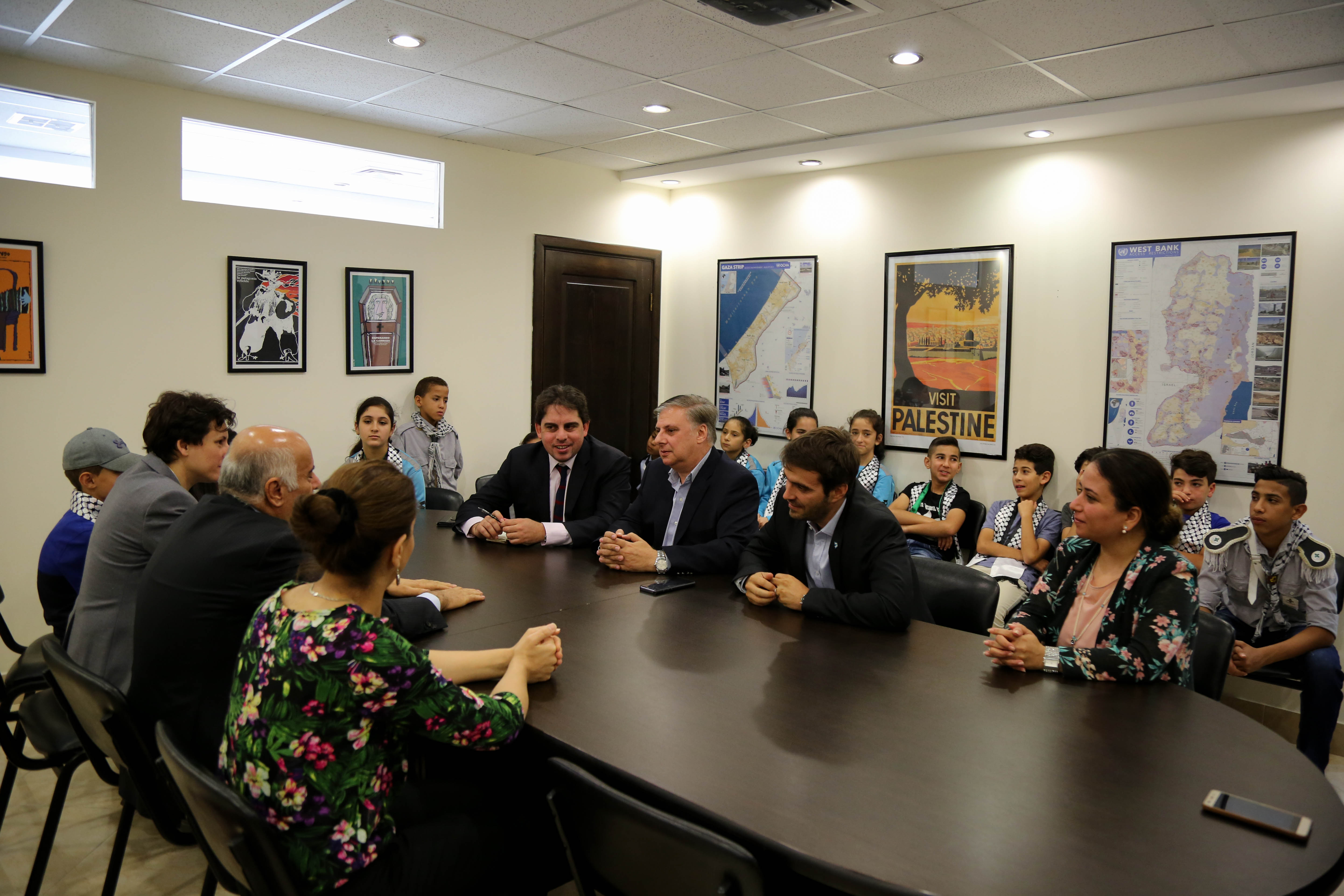 وتم خلال اللقاء تسليم السفير رسالة احتجاج، من أطفال قرية المالحة، موجهة لقائد المنتخب ليونيل ميسي، عبروا خلالها عن حبهم له، وآملين منه عدم اللعب في القدس.