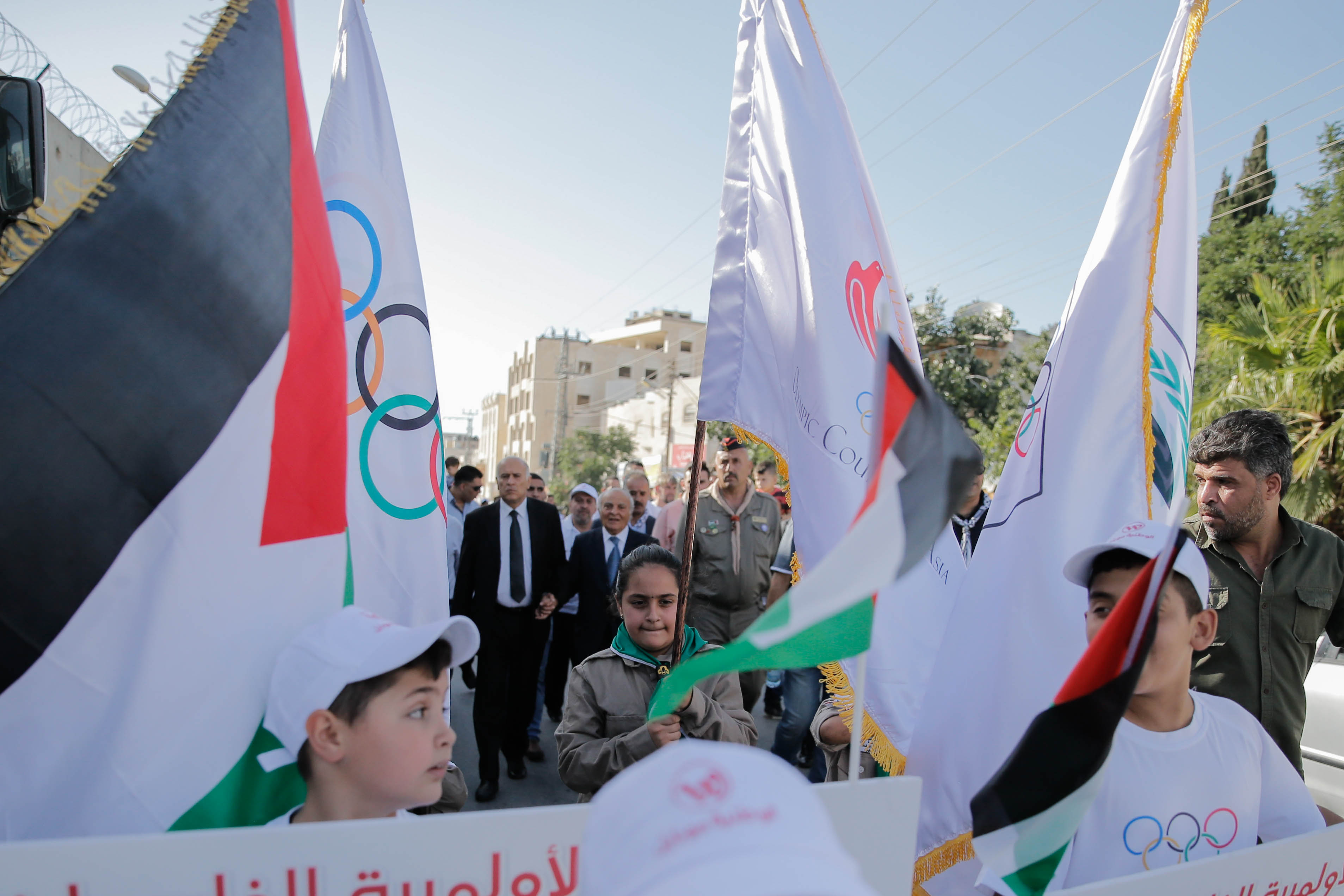 وسبق إيقاد الشعلة مسير برفقة فرق الكشافة وحضور العديد من الشخصيات الرسمية والاعتبارية وكوادر العمل في اللجنة الأولمبية والاتحادات الرياضية والمجلس الأعلى للشباب والرياضة، وممثلين عن الشركاء والرعاة، على طول خط جدار الفصل العنصري، باتجاه ملعب فيصل الحسيني لمتابعة نهائي كأس فلسطين بكرة القدم بين هلال القدس وشباب خان يونس، الذي يأتي تزامناً مع انطلاق الفعاليات.