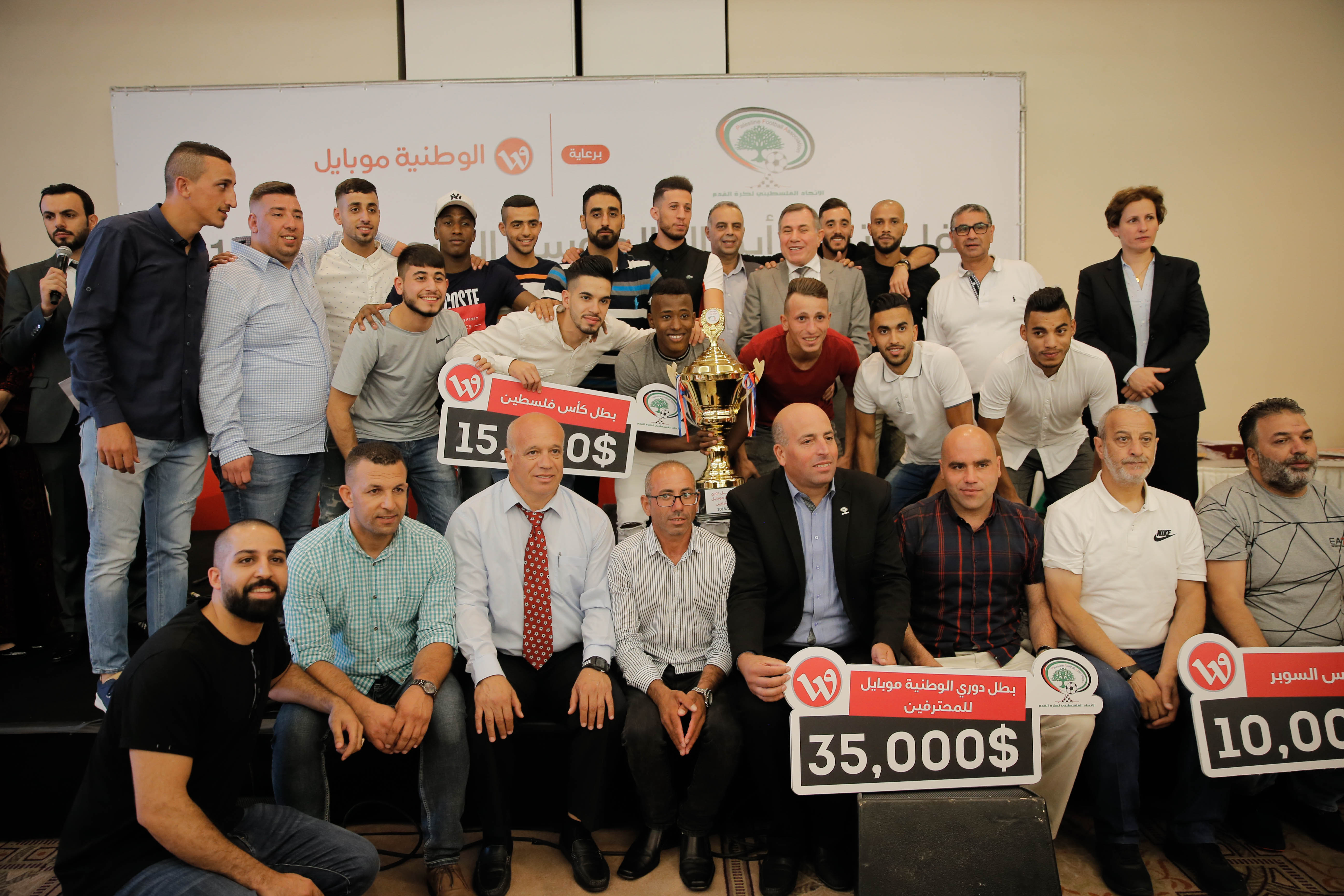 توج الاتحاد الفلسطيني لكرة القدم، أبطال الموسم الكروي 2017/2018، اليوم، في مدينة رام الله، بحضور اللواء جبريل الرجوب، رئيس الاتحاد الفلسطيني لكرة القدم، د. ضرغام مرعي، المدير التنفيذي لشركة الوطنية موبايل، أحمد عساف، المشرف العام على الهيئة العامة للاذعة والتلفزيون، وعدد من الشخصيات الرياضية، وممثلين عن الأندية المتوجة.