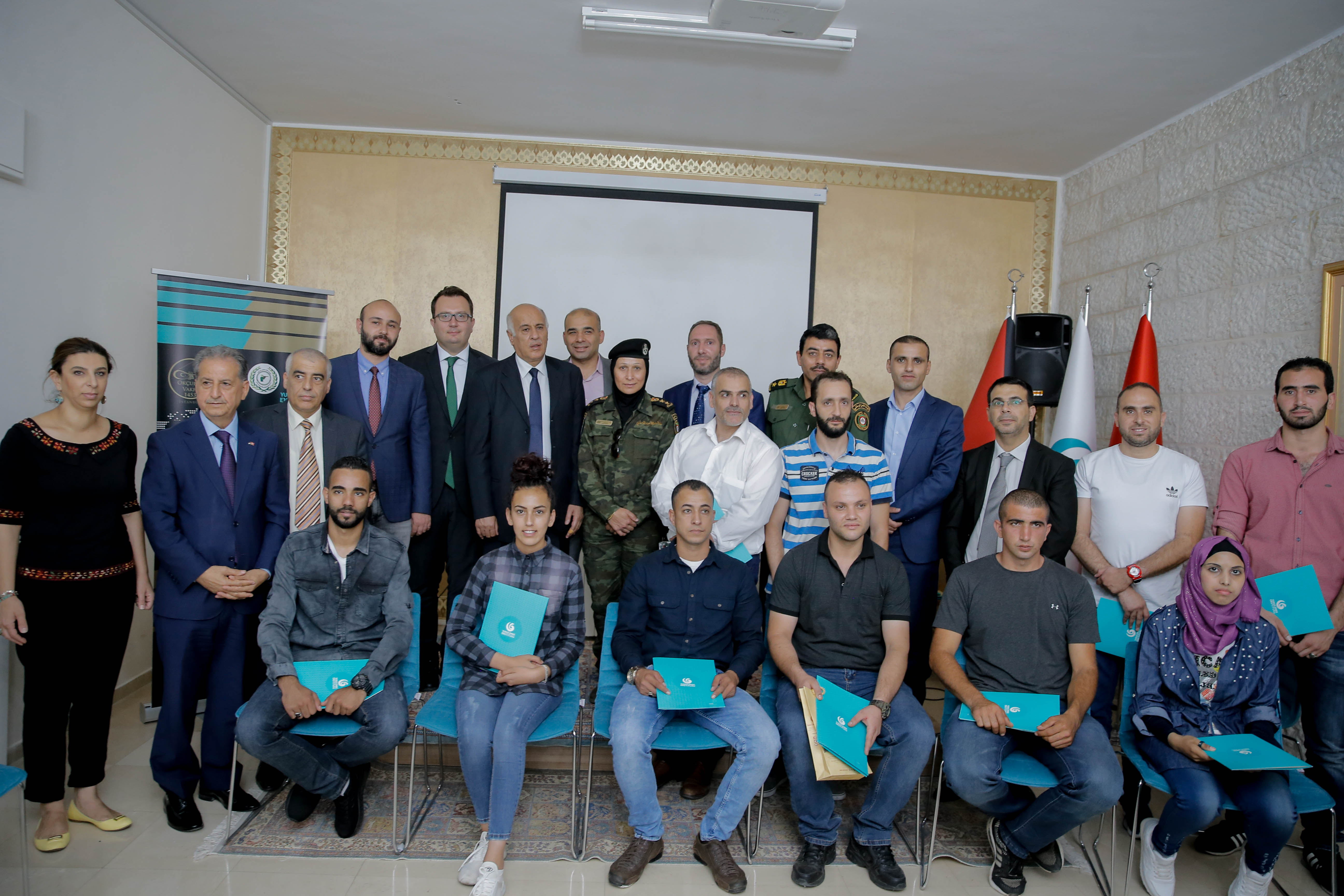 واختتم الحفل بتوزيع الشهادات على الخريجين وهم: محمد صلاحات، موسى عادي، وائل جبارة، نائل رجب، نرمين أبو سرية، عماد جعفر، سامر سديل، حنين علامة، معاذ الشولي، وائل الحاج، كما تابع الحضور جانب من ممارسة اللاعبين للعبة القوس والسهم في الساحة الخارجية للمركز الثقافي التركي.