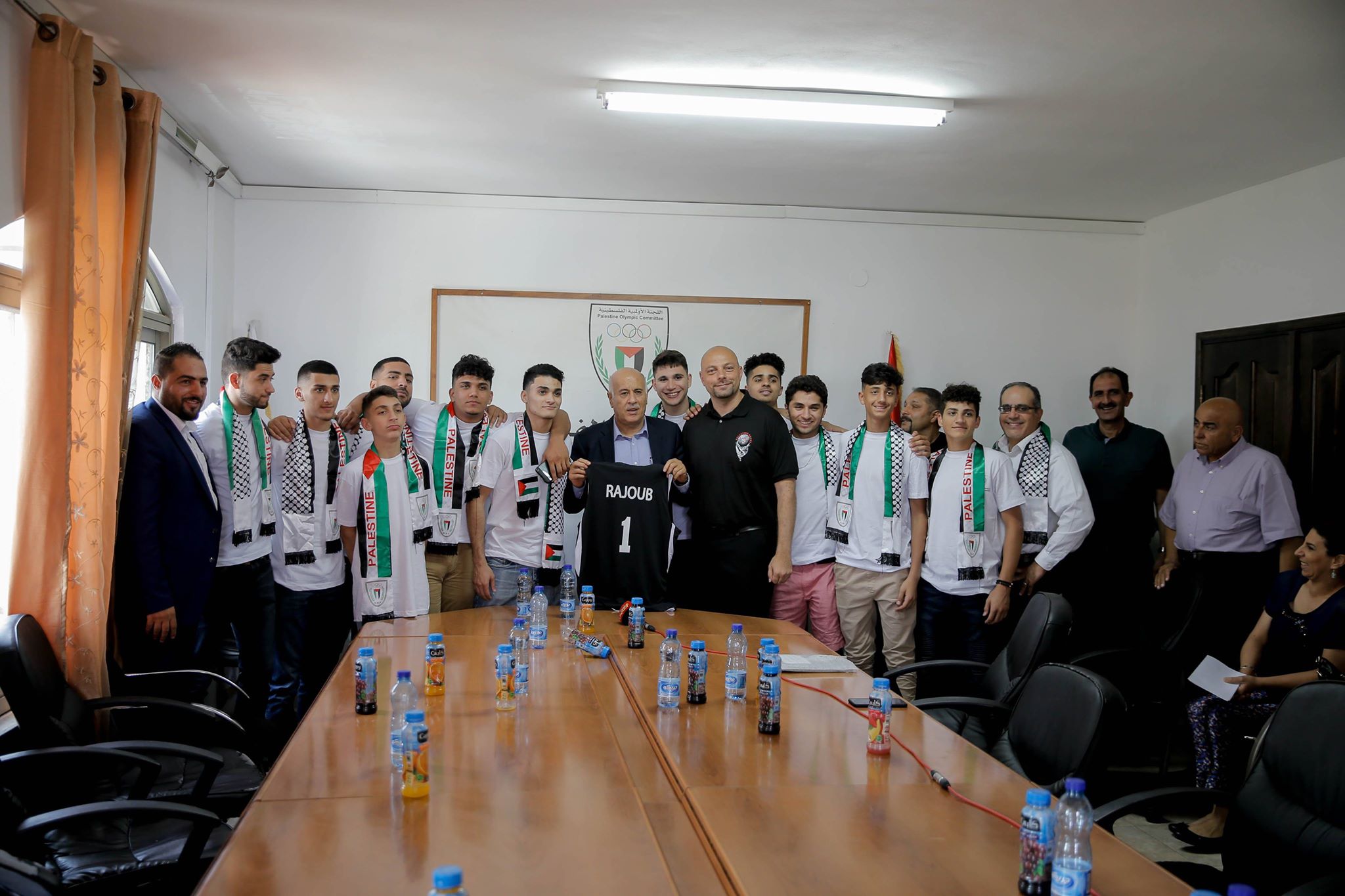 استقبل اللواء جبريل الرجوب رئيس اللجنة الأولمبية الفلسطينية، بعثة فريق كرة السلّة الفلسطيني القادم من مدينة شيكاغو من الولايات المتحدة الأمريكية، في مقر اللجنة الأولمبية بالبيرة.