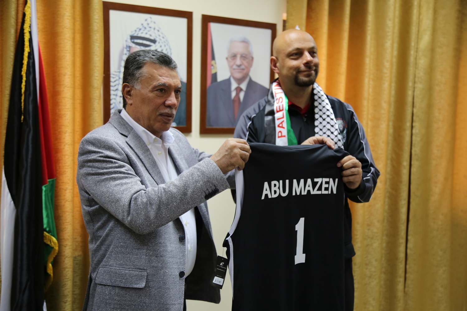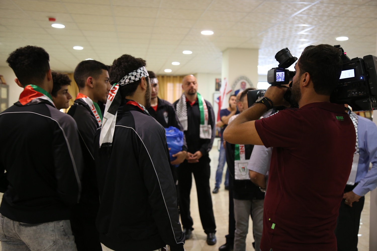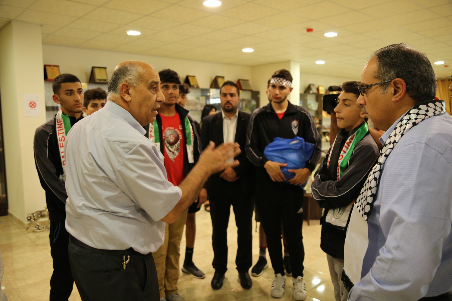 دائرة الإعلام بالاتحاد – زار الوفد الفلسطيني الأمريكي لكرة السلة، اليوم الأربعاء، مقر الاتحاد الفلسطيني لكرة القدم، بالرام، في إطار زيارته إلى فلسطين بداية من يوم الثلاثاء الماضي الموافق 24 تموز/يوليو 2018، حيث زار العديد من محافظات الوطن، كما أجرى مجموعة من مباريات كرة السلة الودّية فيها. وبدأ الوفد الضيف زيارته لاتحاد كرة القدم من خلال جولة في ستاد الشهيد فيصل الحسيني بالرام، حيث استمع لشرح وافٍ عن نشأة الاستاد ومراحل إعادة تأهيليه الأخيرة، كما تجول الوفد الزائر في المتحف الرياضي مشاهداً أبرز محتوياته. وفي نهاية الزيارة تبادل الطرفان الهدايا التذكارية، مع العلم أن الوفد الزائر من المقرر أن يغادر فلسطين صباح غدٍ الخميس.