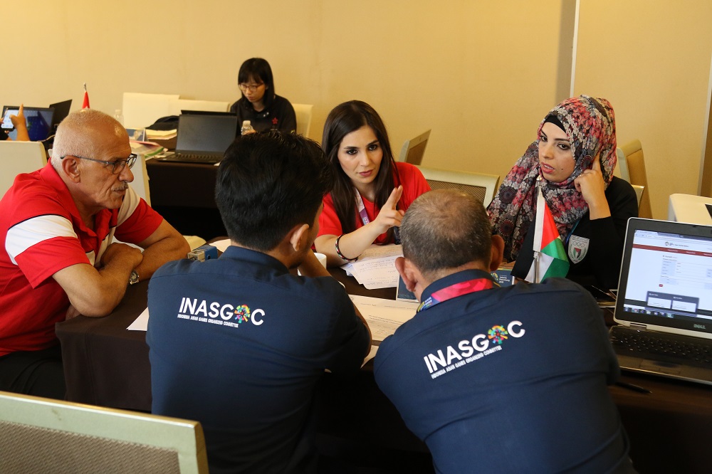 وتمّت عملية مراجعة تسجيل كافة اللاعبين وتحديد وتثبيت مواعيد وصولهم إلى إندونيسيا، قبل الفرز حسب موقع اللعبة، حيث تشارك فلسطين في لعبتي الكرة الشاطئية والترايثلون وسيكون مكان منافساتهما في مدينة بالمبانغ، أما باقي الألعاب فستكون في جاكرتا.