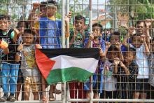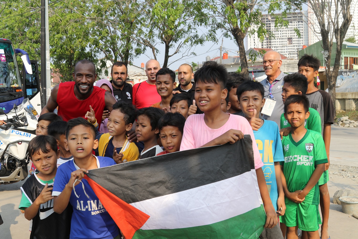 منذ وصوله إلى جاكارتا، حظي منتخبنا الأولمبي باهتمام خاص من الجماهير الإندونيسية، فأينما حطّ رحاله كان محطّ الأنظار، في التدريب الأخير الذي أجراه منتخبنا على ملعب "مودا جايا" في مدينة بيكاسي، تجمهر عددٌ من الأطفال وتابعوا الحصّة التدريبية وهتفوا باسم فلسطين، حتى أنّهم أحضروا علم فلسطين وعلّقوه على مدخل الملعب كما يظهر في الصوة المرفقة.