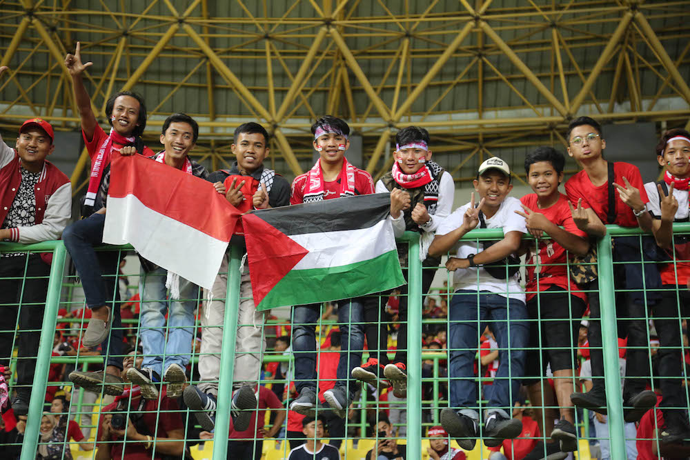 بالمقابل عانى لاعبو إندونيسيا من الوصول إلى منطقة جزاء فلسطين حتى الدقيقة 20، ومن كرة أحدثت دربكة داخل منطقة الجزاء، كاد اللاعب كافين ادست من إحراز هدف التعادل، لولا تدخّل سامح مراعبة في الوقت المناسب وإبعاد الكرة خارج الملعب.