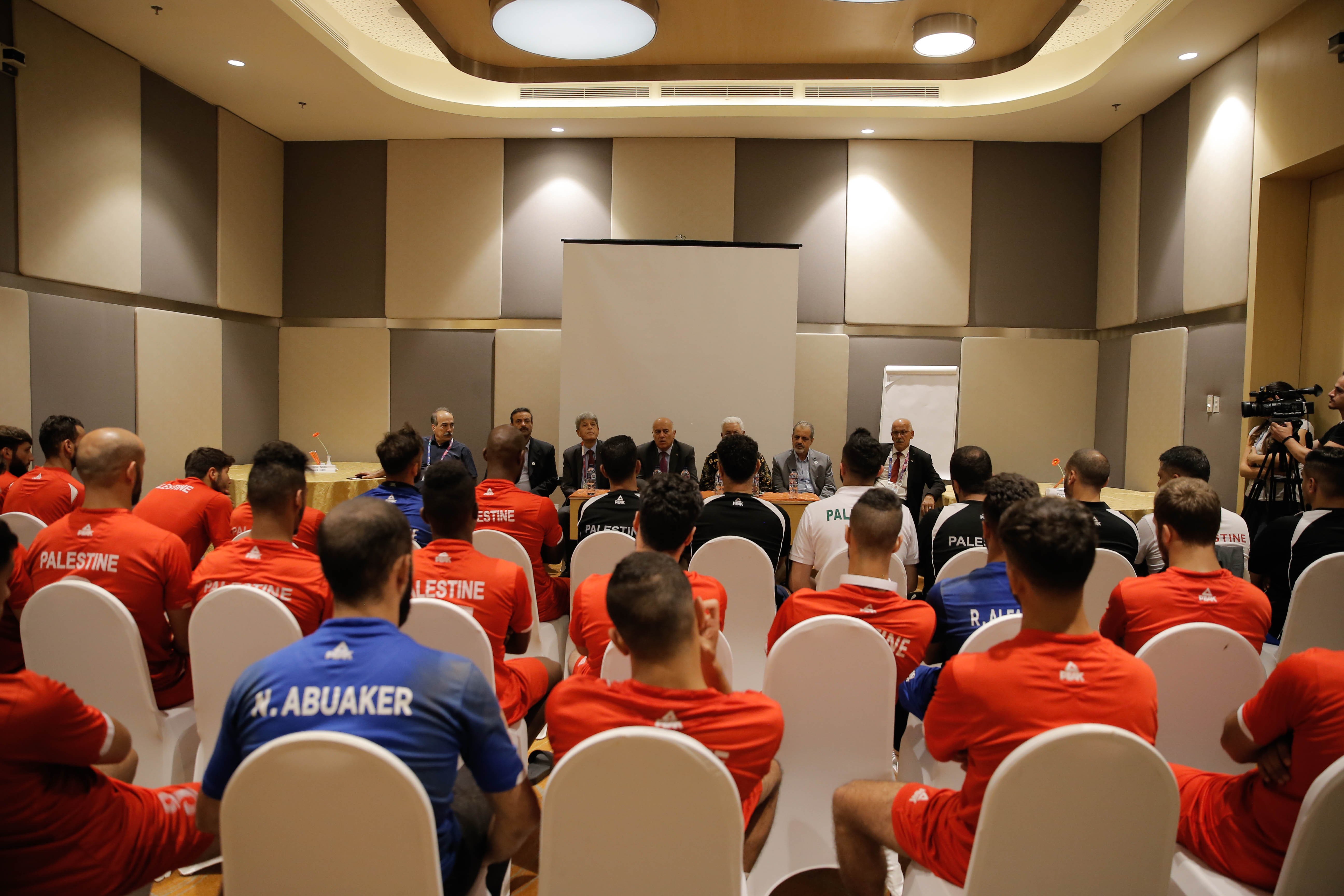 وشدد الرجوب على ضرورة أن يعكس اللاعبين صورة طيبة عن فلسطين وشعبها، خاصة في ظل وجود دعم جماهيري كبير للمنتخب من الشعب الاندونيسي الذي سانده في مباراته أمام شقيقه المنتخب الإندونيسي.