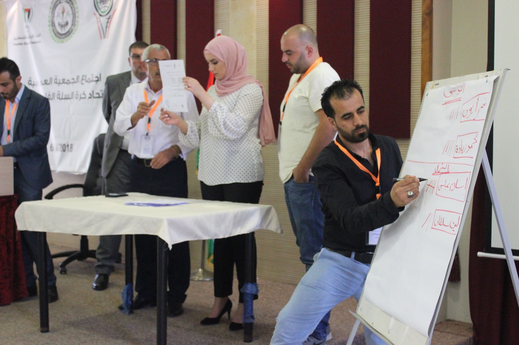 ووفق الأنظمة والقوانين المتّبعة، وبعد اكتمال النصاب القانوني بحضور 24 نادياً وتغيّب ناديين فقط هما: أهلي القدس وقراوة بني حسّان، جرت الانتخابات عن منطقتي الشمال والقدس، وبعد إلغاء ورقة واحدة من قبل الدكتور محمد الأحمد رئيس اللجنة الانتخابية والقانونية لعدم قانونيتها، حسممنطقة الشمال إسلام عبّاس بواقع 18 صوتاً مقابل خمسة أصوات لليث سلطان من أصل 23 صوتاً، ومنطقة القدس التي حسمها نمر أيوب بواقع 12 صوتاً مقابل 11 صوتاً لمحمد زيادة من أصل 23 صوتاً.